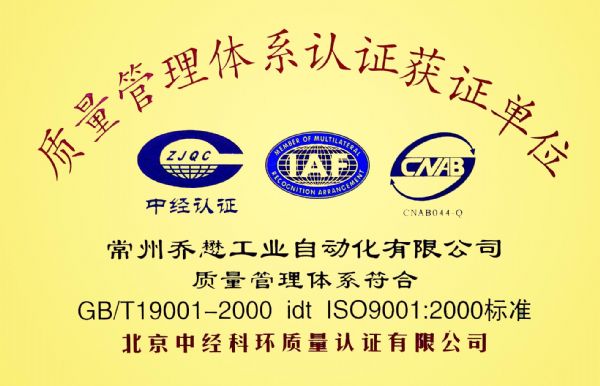 常州乔懋开始导入ISO9001质量管理体系,并于2005.09月取得认证通过。